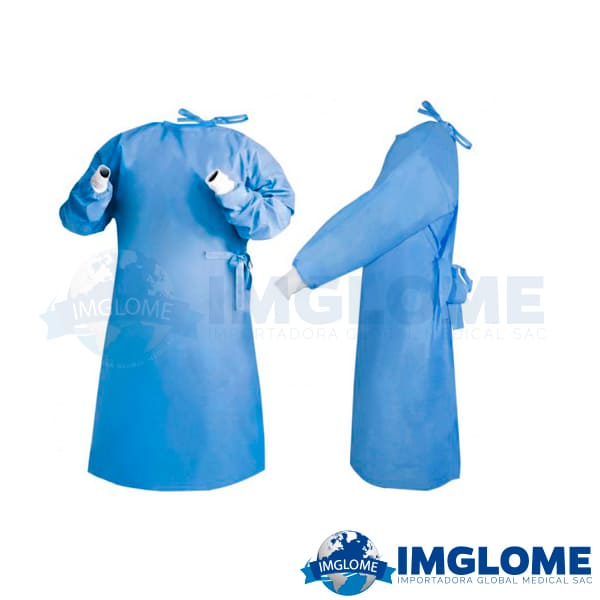 MANDIL DESCARTABLE ASEPTICO – TALLA L | MDA-002 | ROPA HOSPITALARIA – Mandil de manga larga y con puños elásticos. Con abertura en la parte posterior. El mandil no es transparente. Con tiras hechas del mismo material. El producto tiene textura uniforme, suave al tacto, sin hilachas, no presenta agujeros o rasguños, manchas o variaciones significativas de color.